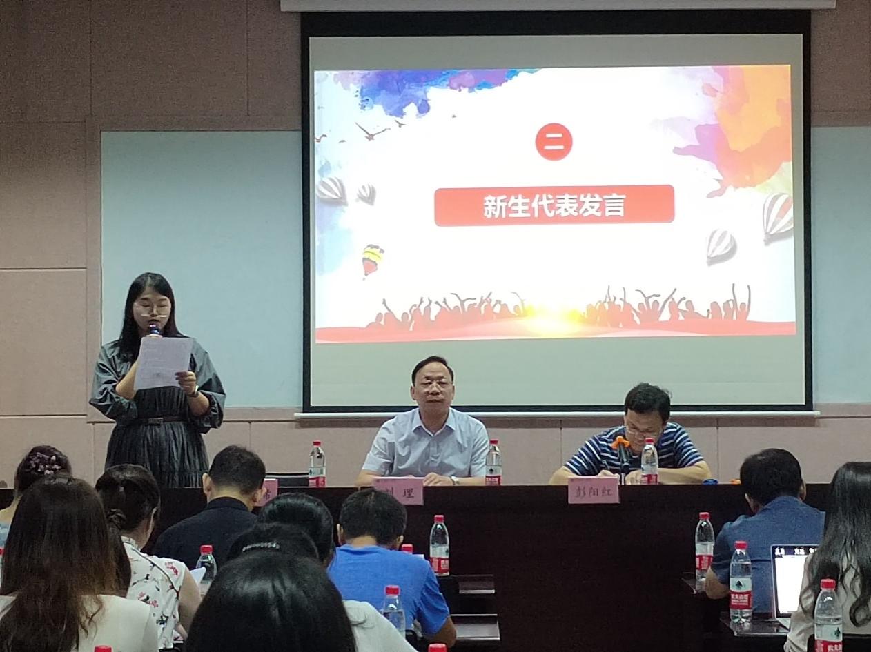 随后,教师代表廖霞发言。她讲述了自己的成长历程,用亲身经历告诉我们勤奋、坦然是解决担忧、焦虑最现实最可靠的方式。她希望各位新生都能在自己导师的悉心指导下茁壮成长。