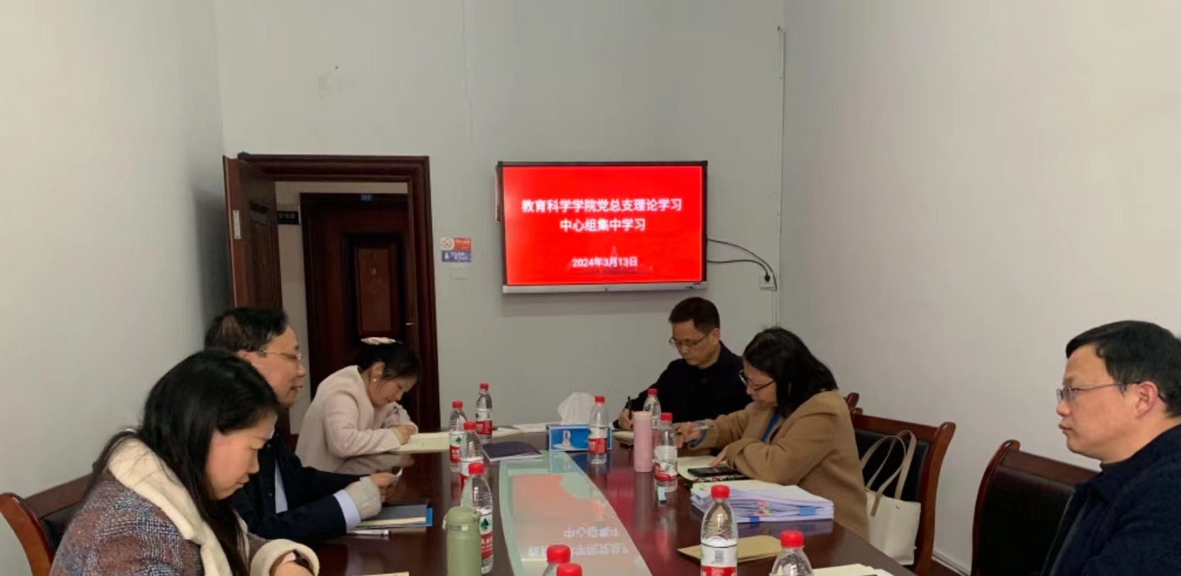 3月13日下午,教育科学学院党总支理论学习中心组在综合楼312会议室开展集中学习。中心组全体成员参加学习。